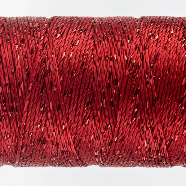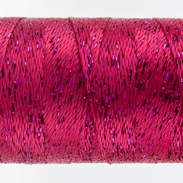 8wt 6-ply 100% rayon.thread is comparable in weight to a #8 perle cotton. 200yd (183m) spool. Dazzle's rayon and metallic mix carries a naturally bright lustre with a silky finish, making it an excellent choice for bobbin work, thread painting, handwork, and highlighting the details on dimensional stitches. Because of Dazzle's™ light reflective properties and "pop" of metallic, the detail on wool appliqué and layering can be enhanced with edging stitches for that extra sparkle.