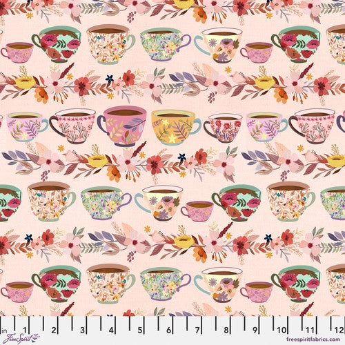 Modern bright pink and orange flowers on a pretty light pink background. This is from designer Anna Maria Horner's line Love Always line by Free Spirit.